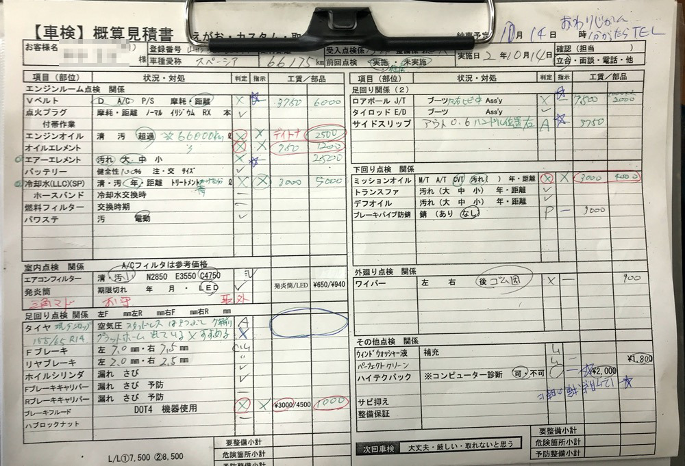 今回、車検の見積りに立ち会っていただいた訳ですけど