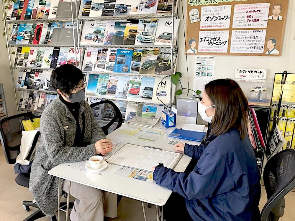 そんな事をK子さんと話ししていたら、「女性ひとりでも、(車に)詳しくなくても大丈夫だよ」って聞いて、それで来たんです。