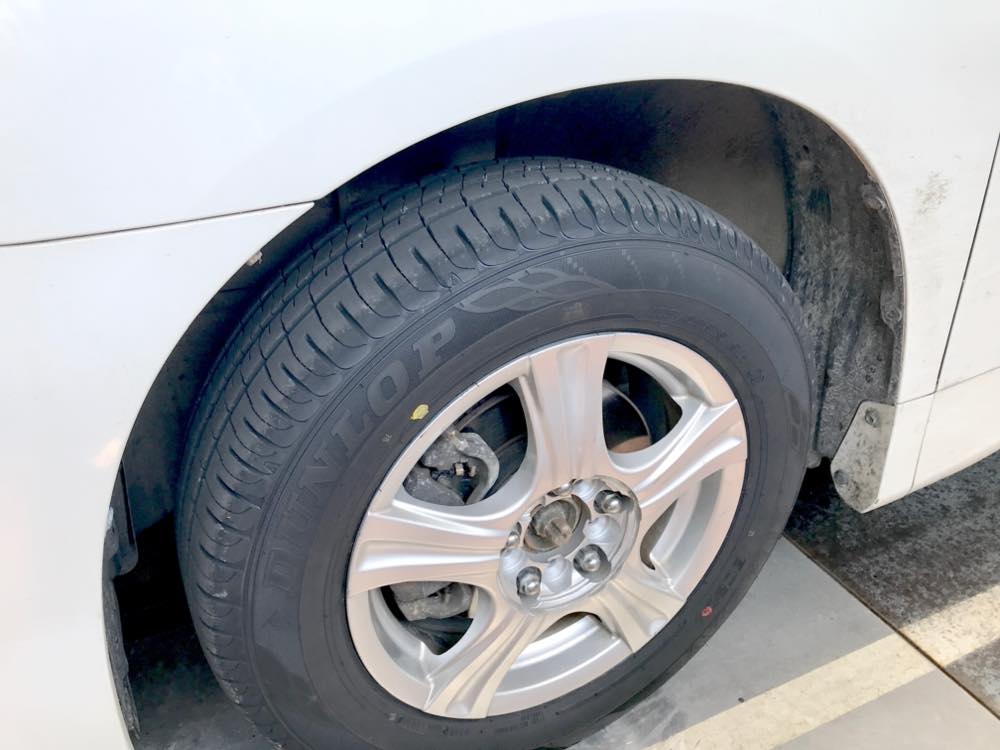 4本交換の提案をさせていただいたのですが、予算の都合もあり結局は普通タイヤ2本を新品で交換することになりました。