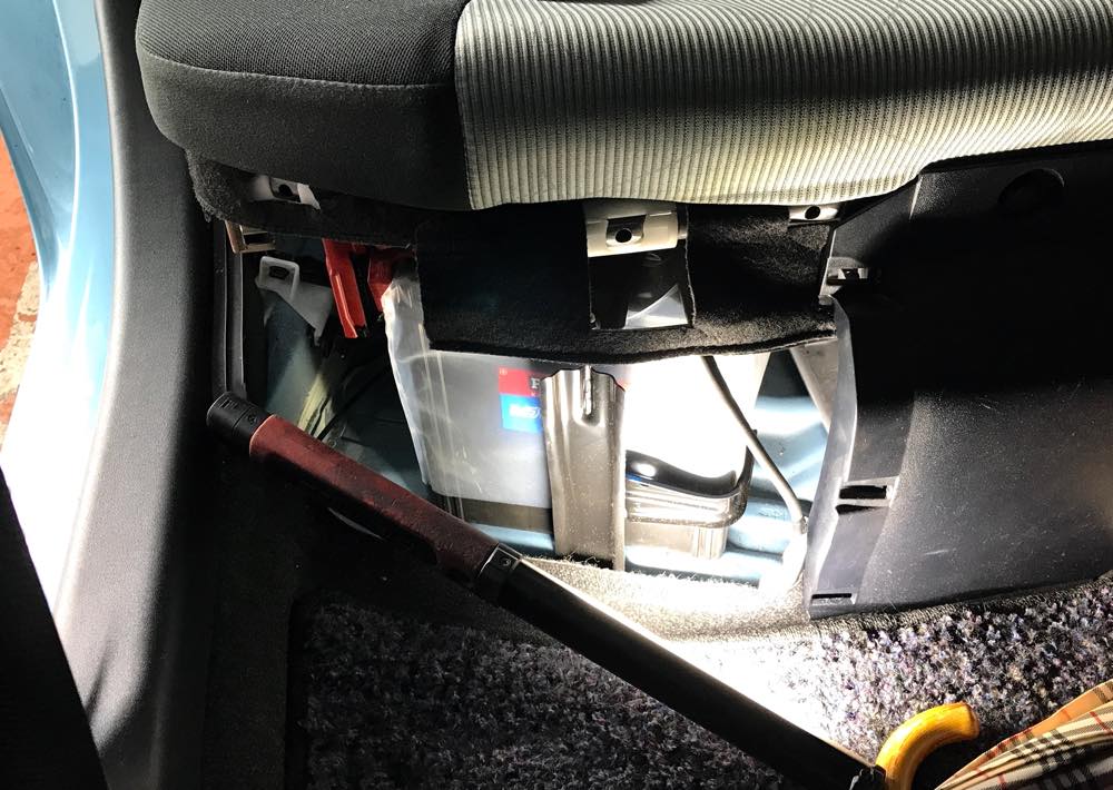 車はアクア、バッテリーはリヤシートの下なんで