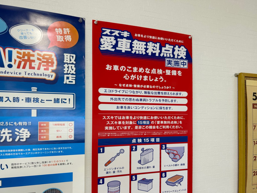 スズキ車を対象に15項目の「愛車無料点検」を