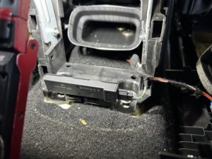 運転席と助手席の間の『肘掛け』の中あたりから聞こえてきます