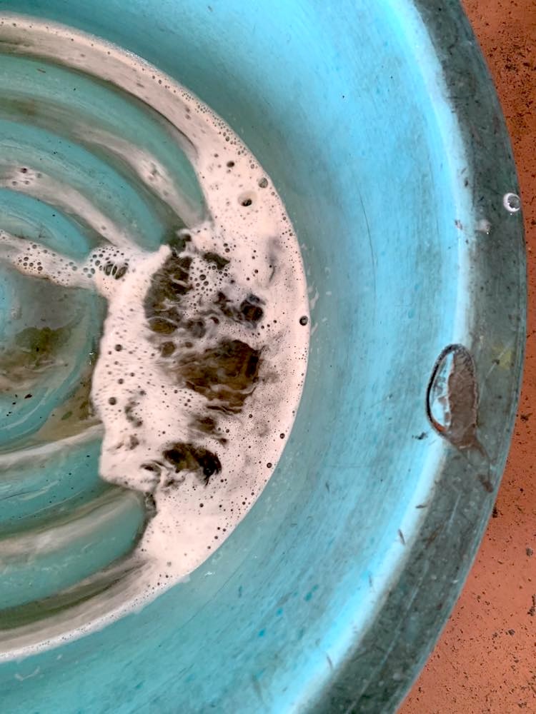 洗剤の泡などを吹きかけて汚れを浮かせる・・