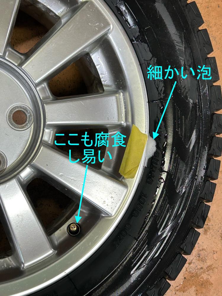タイヤと接触しているホイールの部分が腐食して