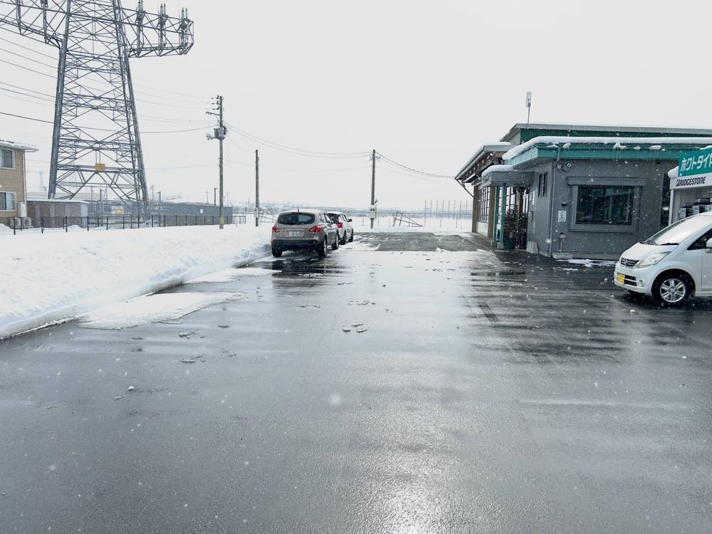 駐車場脇に積み上げる雪もまだまだ低いです(^^)